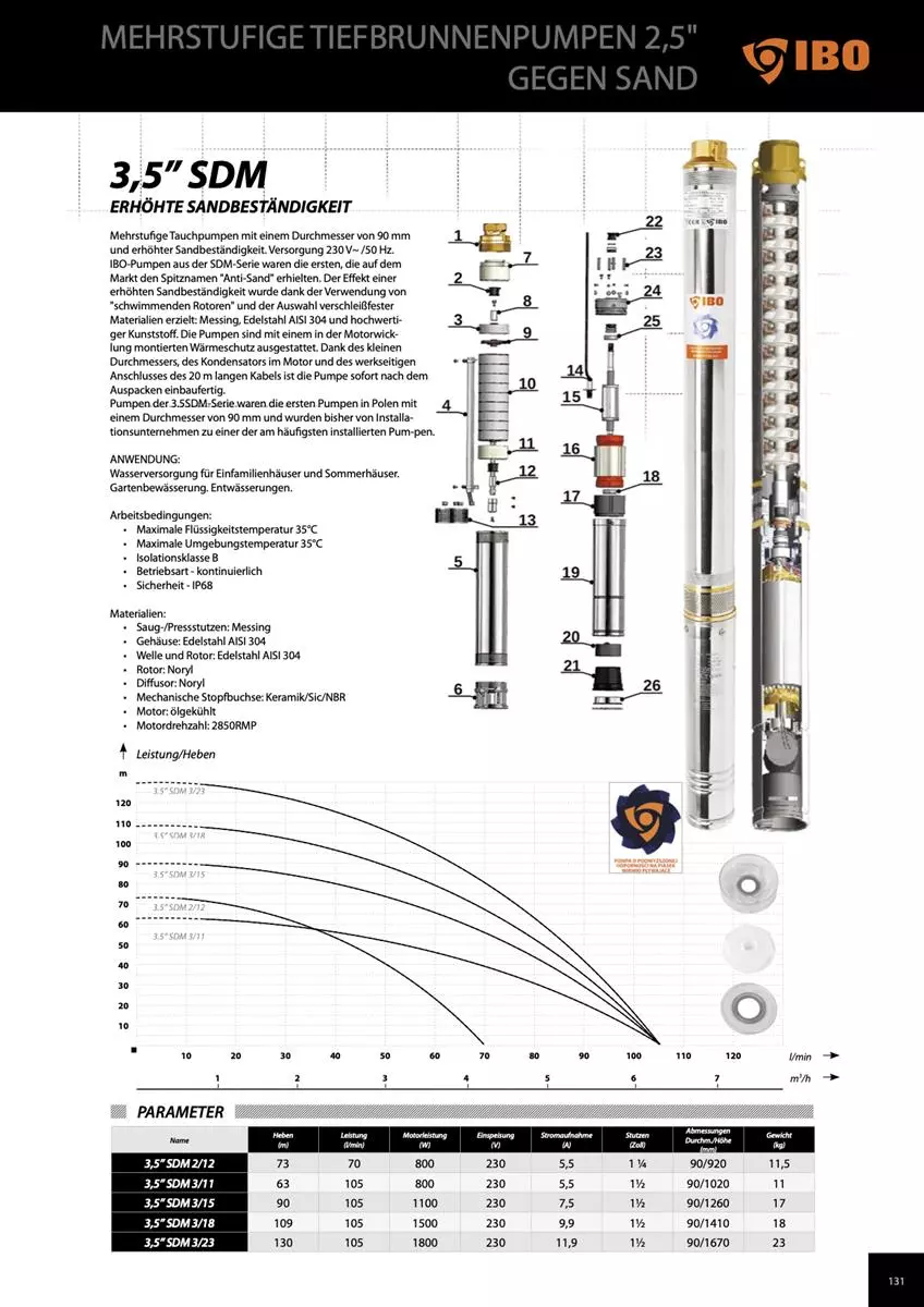 3,5 Zoll IBO Pumpe SDM Serie 3,5"SDM3/11-1,5 m